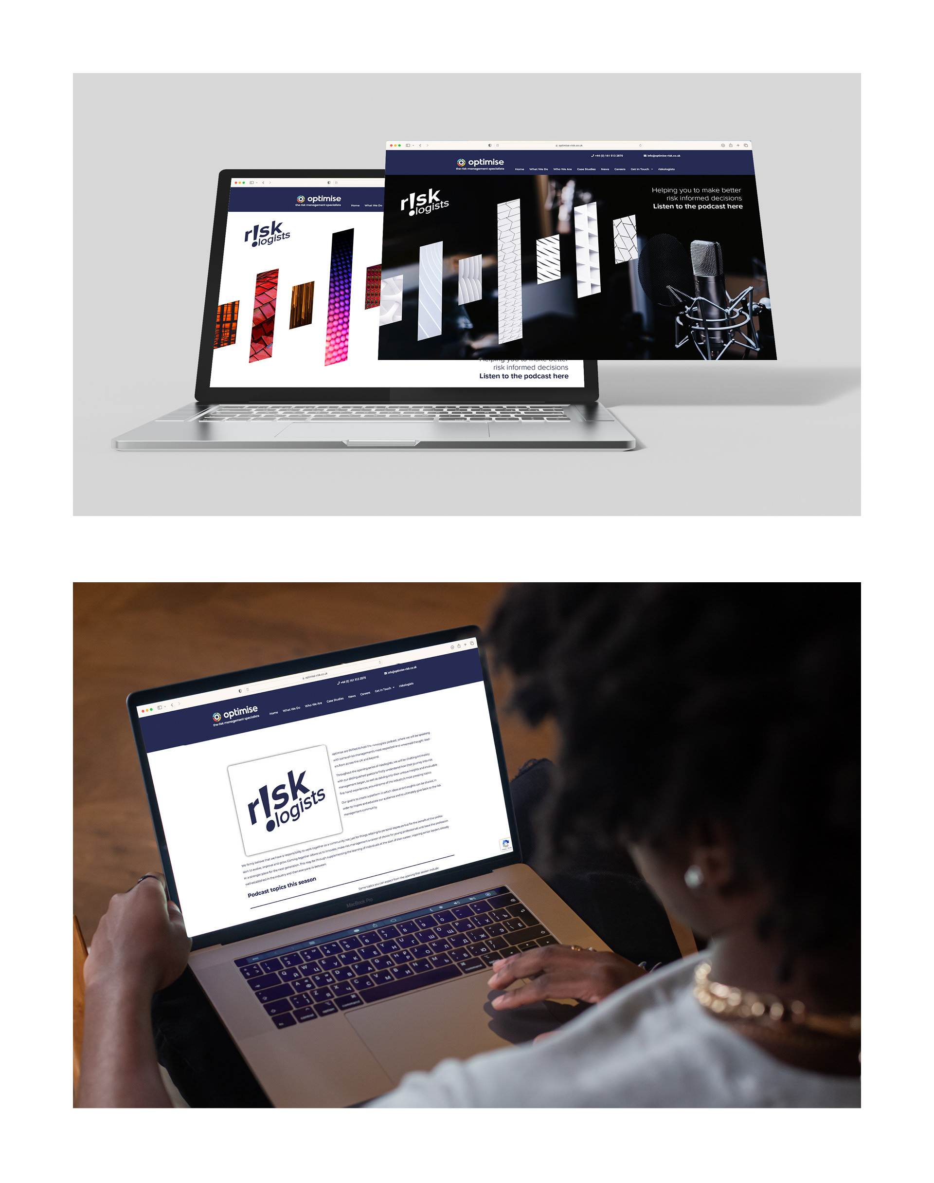 Freelancing for, Optimise, the risk management specialists. Utilise their font and create a simple clean looking identity for their podcast series